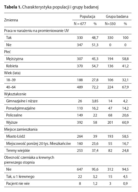 collect data on health-promoting and anti-health behaviours. Individuals with suspicious skin lesions were referred for dermatological examinations. Pearson‘s chi-square test or Fisher‘s exact test were used for selected variables, and the p values p < 0.05 were considered significant.